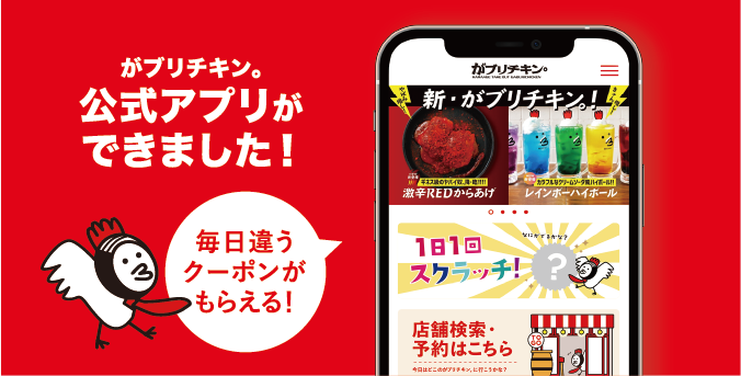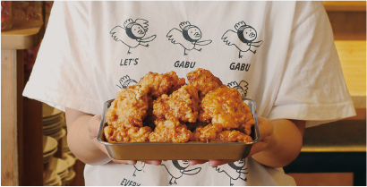 バル酒場を経営していた創業当時、ハイボールに一番合うからあげを研究し始めました。「からあげにかぶりつき、ハイボールで流し込む」をテーマに豪快さを楽しめるからあげを目指して開発を重ね、がブリチキン。のからあげは誕生しました。